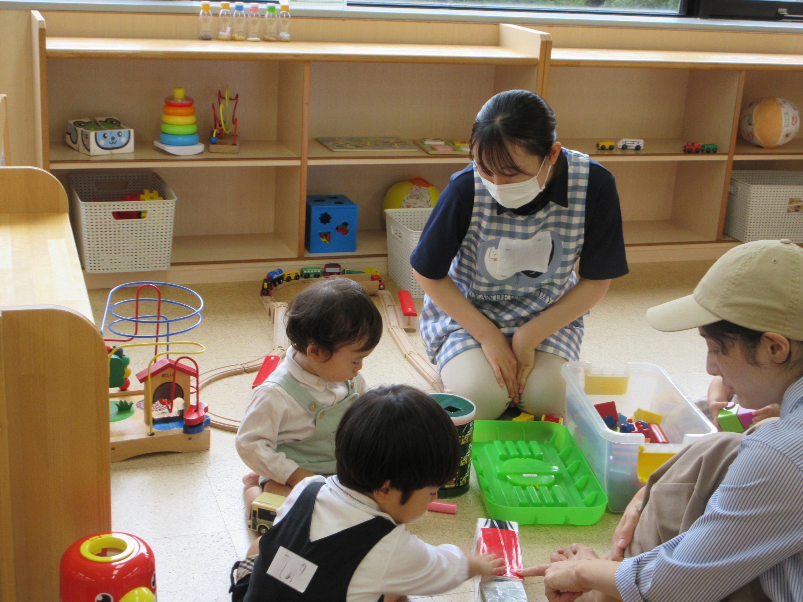 緊張しながらもひろばでお子さんたちと遊びながら徐々に笑顔も見られました。