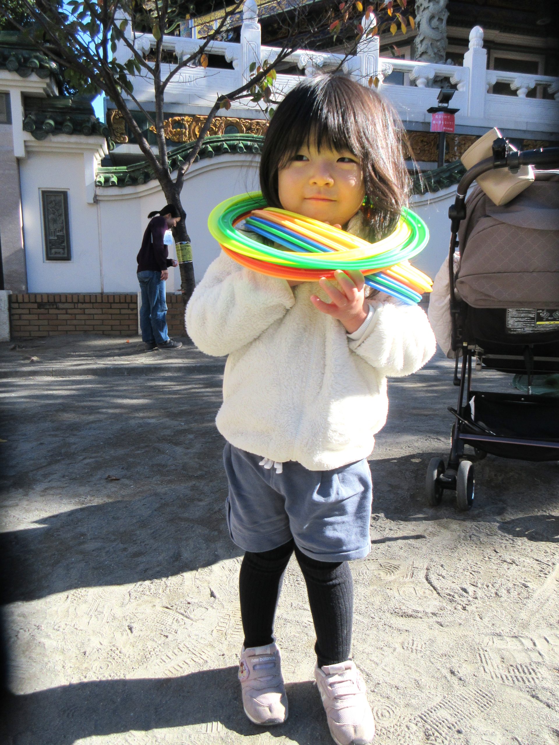 途中で目の前の保育園からお友達が出てきて「だーっ」と走っていたので、