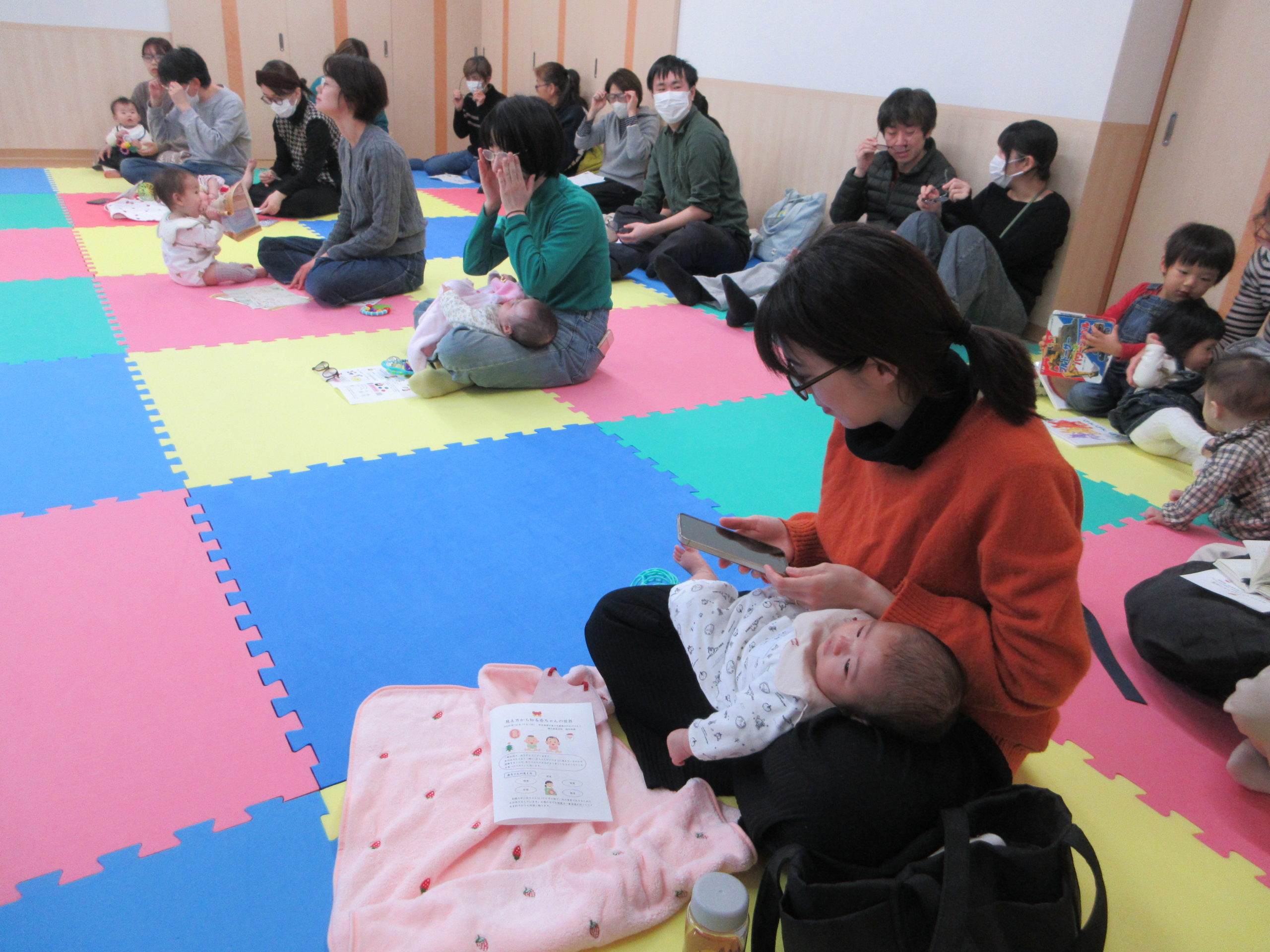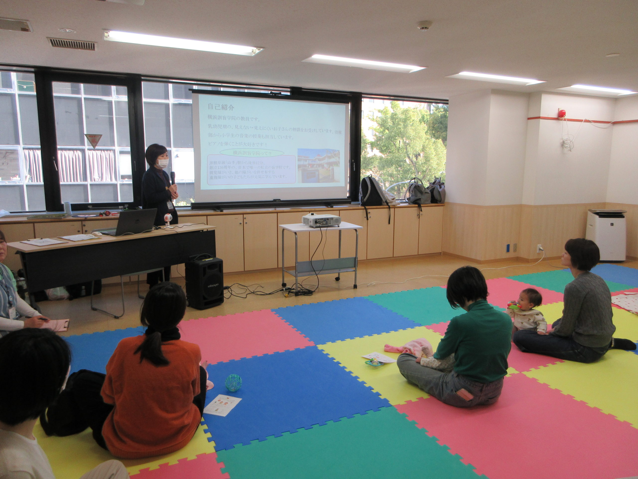 午前中、横浜訓盲学院の先生に来ていただき『見え方から知る赤ちゃんの世界』を開催しました。