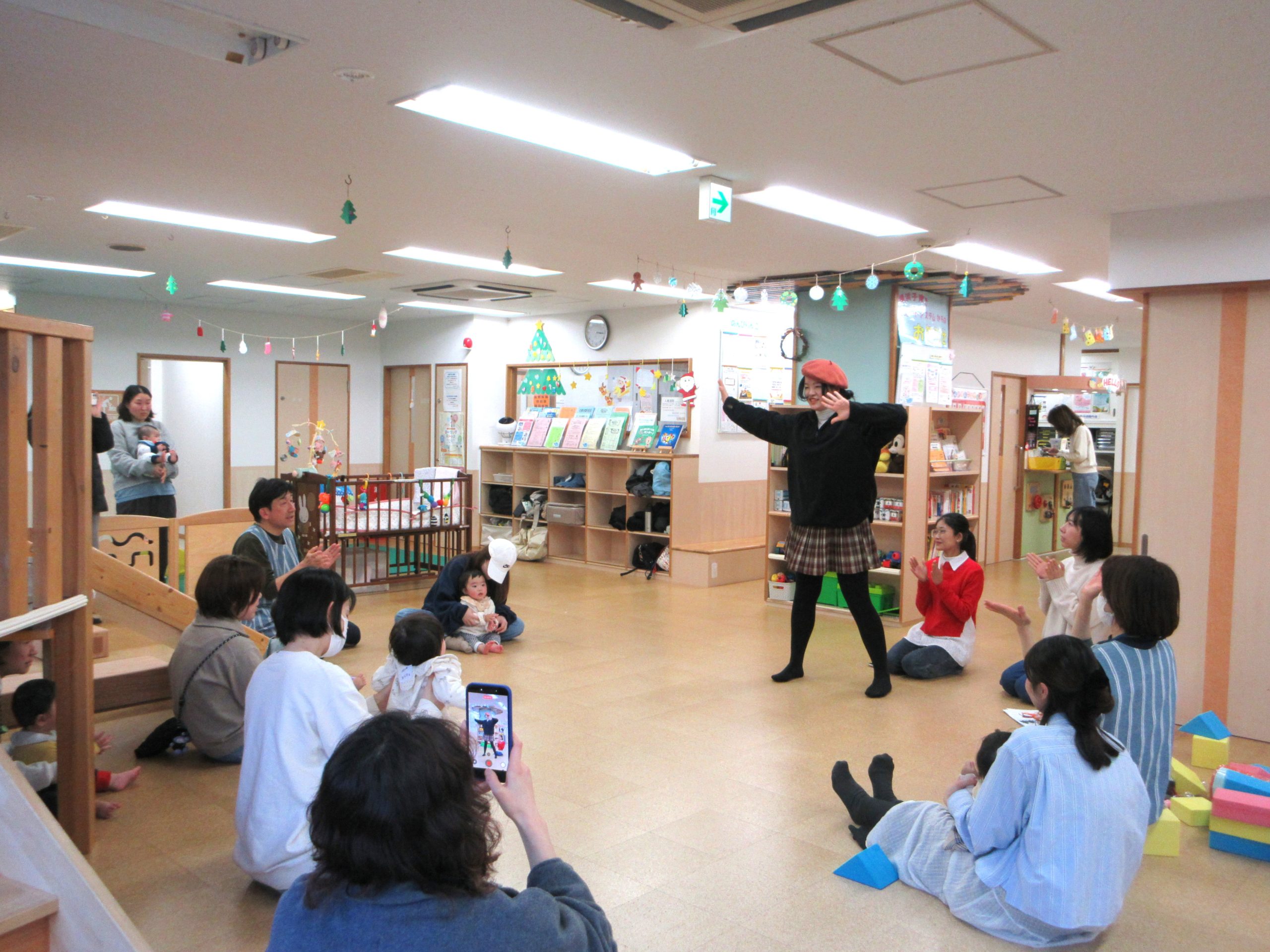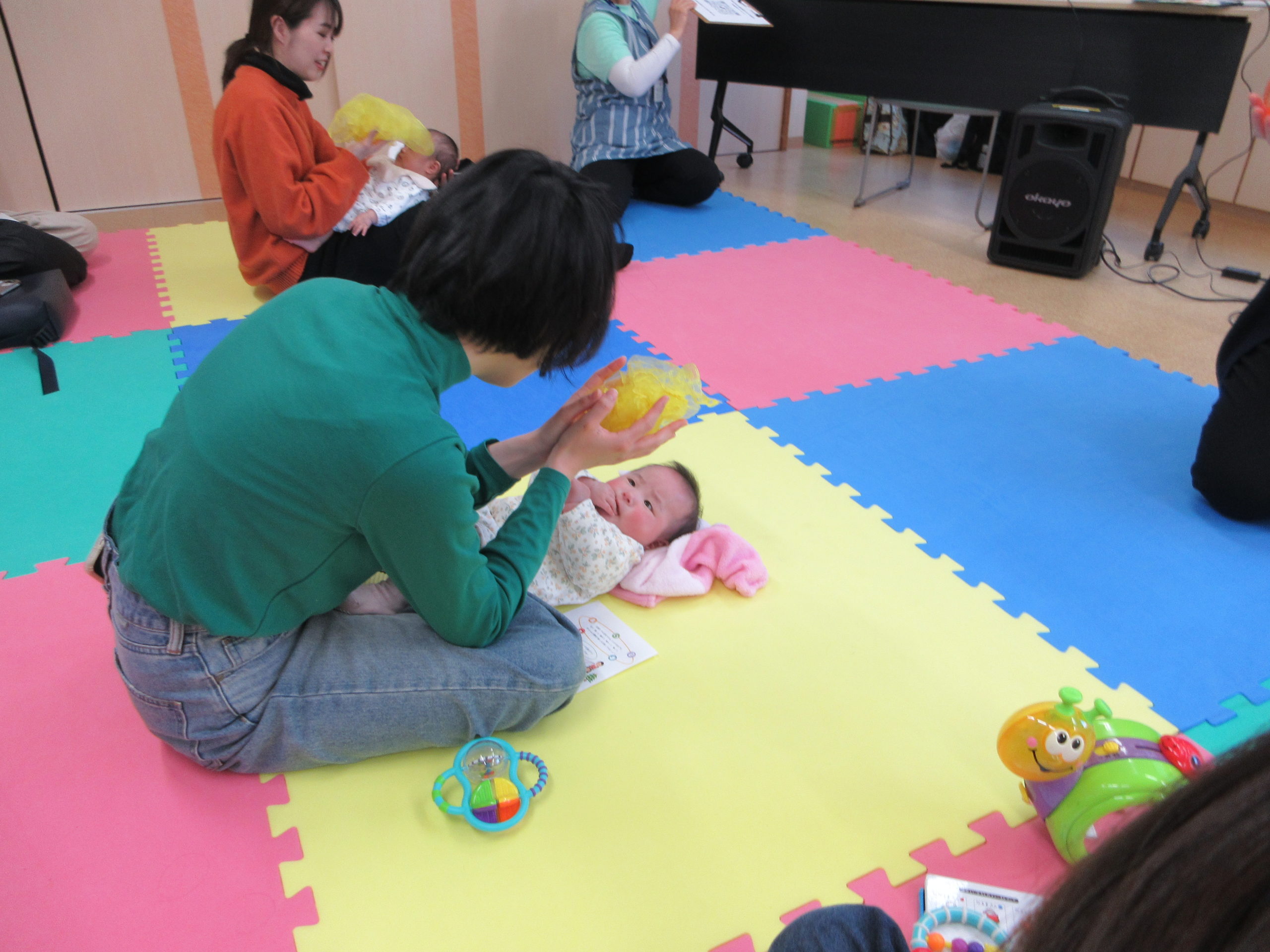 楽しい曲♬には一緒に踊りだすお子さんもいて、そしてダンスの振り付けもどこかYouTubeで見たような振り付けでのりのりでしたのでママたちの笑顔も見られ、楽しく微笑ましいひと時になりました。