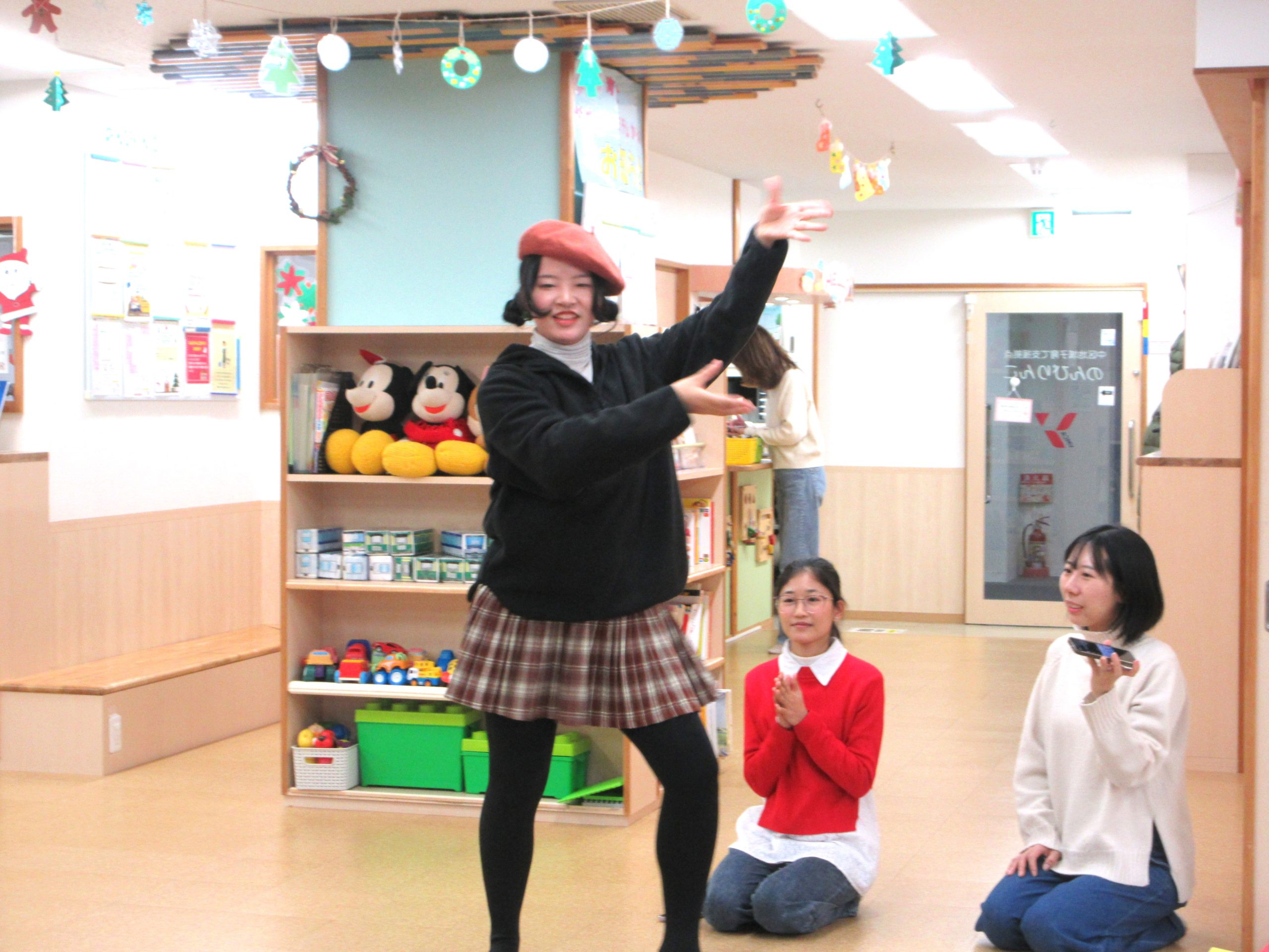 午後には、近くのYMCAの専門学校で日本語を学んでいる学生が3人来てくれて、各国で冬に子どもたちに読む絵本や歌を披露してくれました。