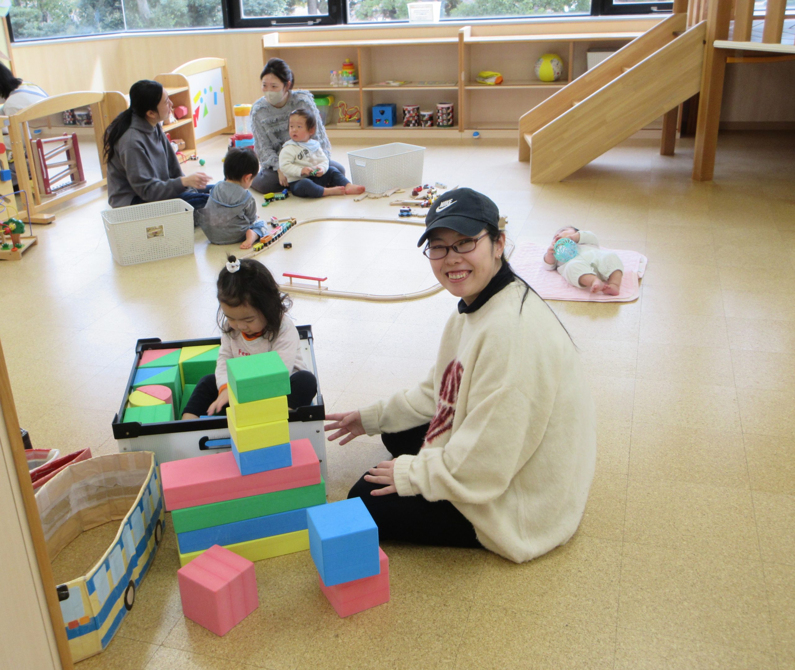 ひろばではお子さんの好きなおもちゃで遊んだり、すべり台をしたり