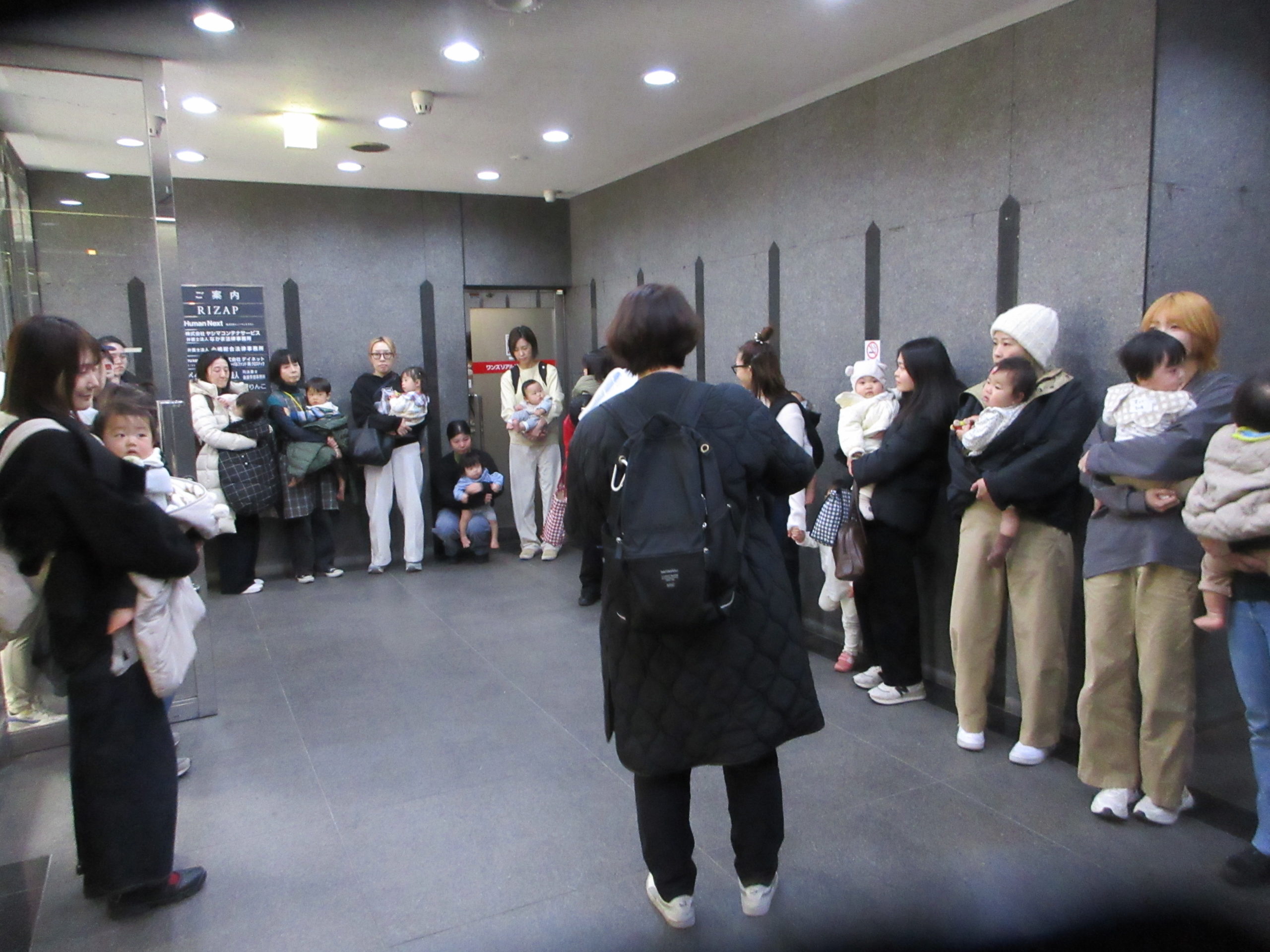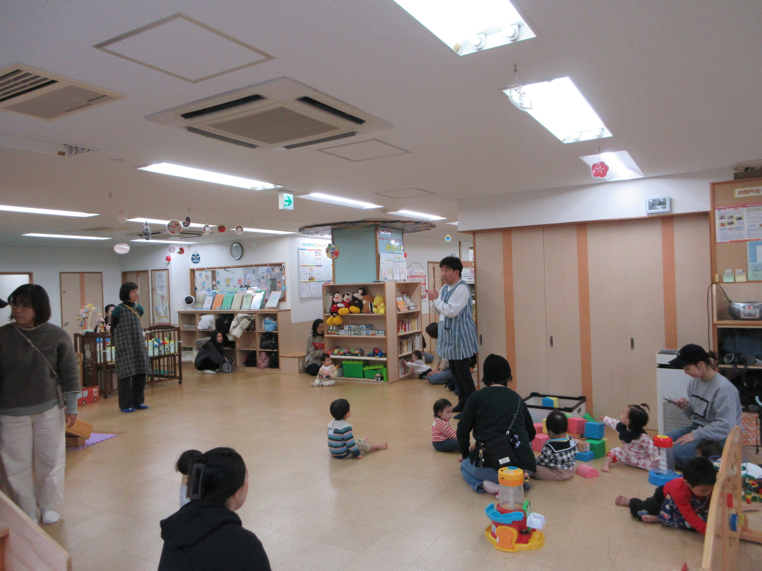 のんびりんこでは午後から地震を想定した訓練を行い、21組の親子が参加され実際に避難を行いました。