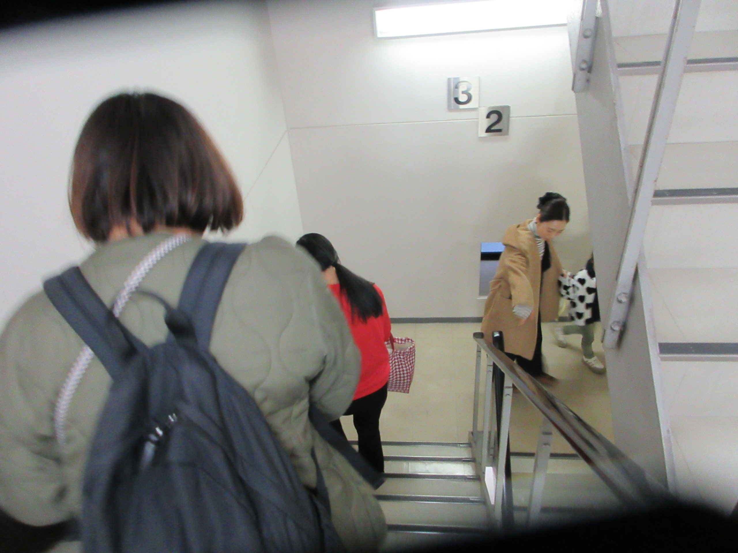 今日はスタッフを含めて全員で51人で3階から1階まで階段で下り、長い列での避難訓練になりました。