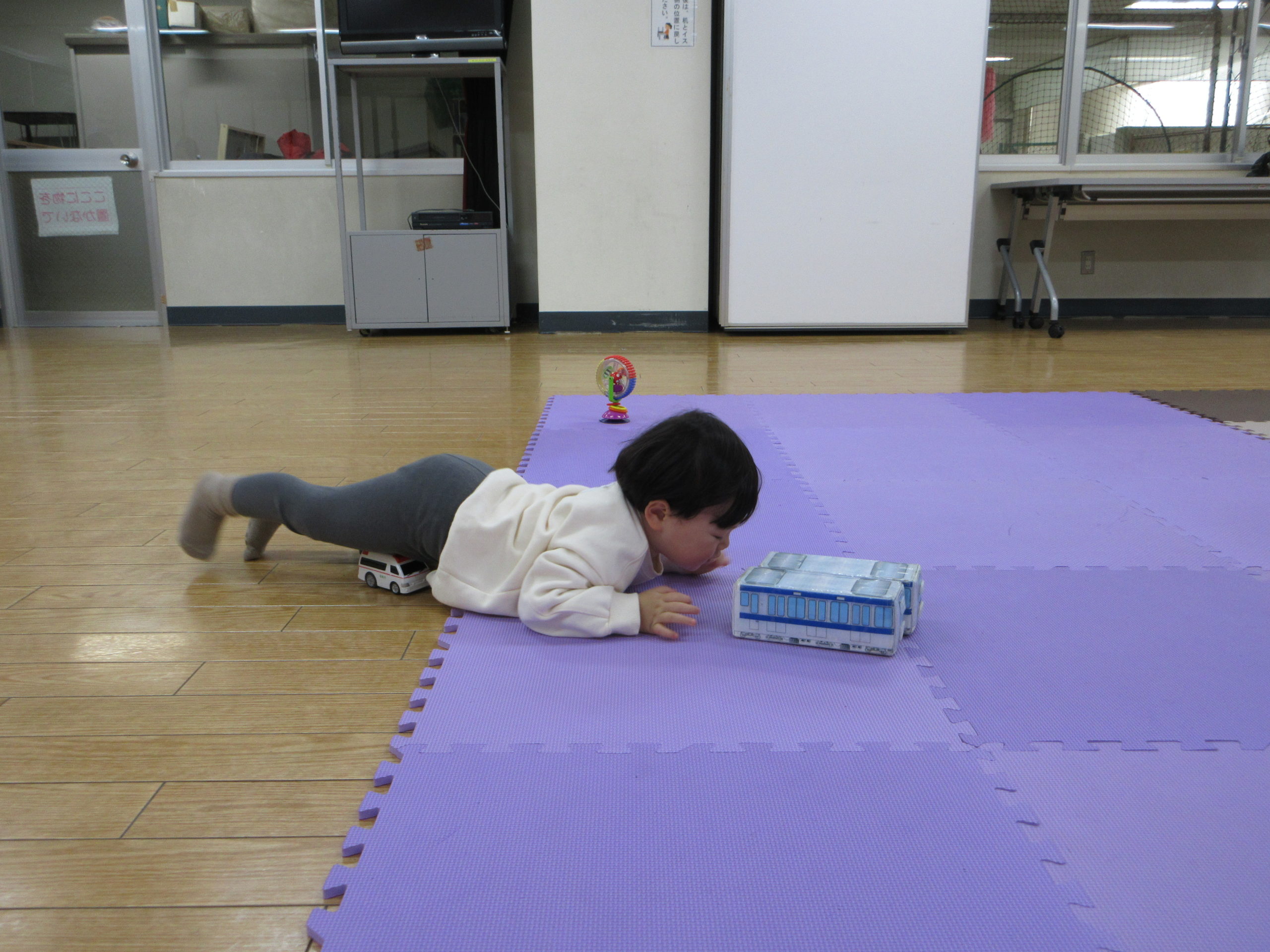 5組の親子が電車や車の遊具で遊んだり、ママ同士おしゃべりをされたりしていました。