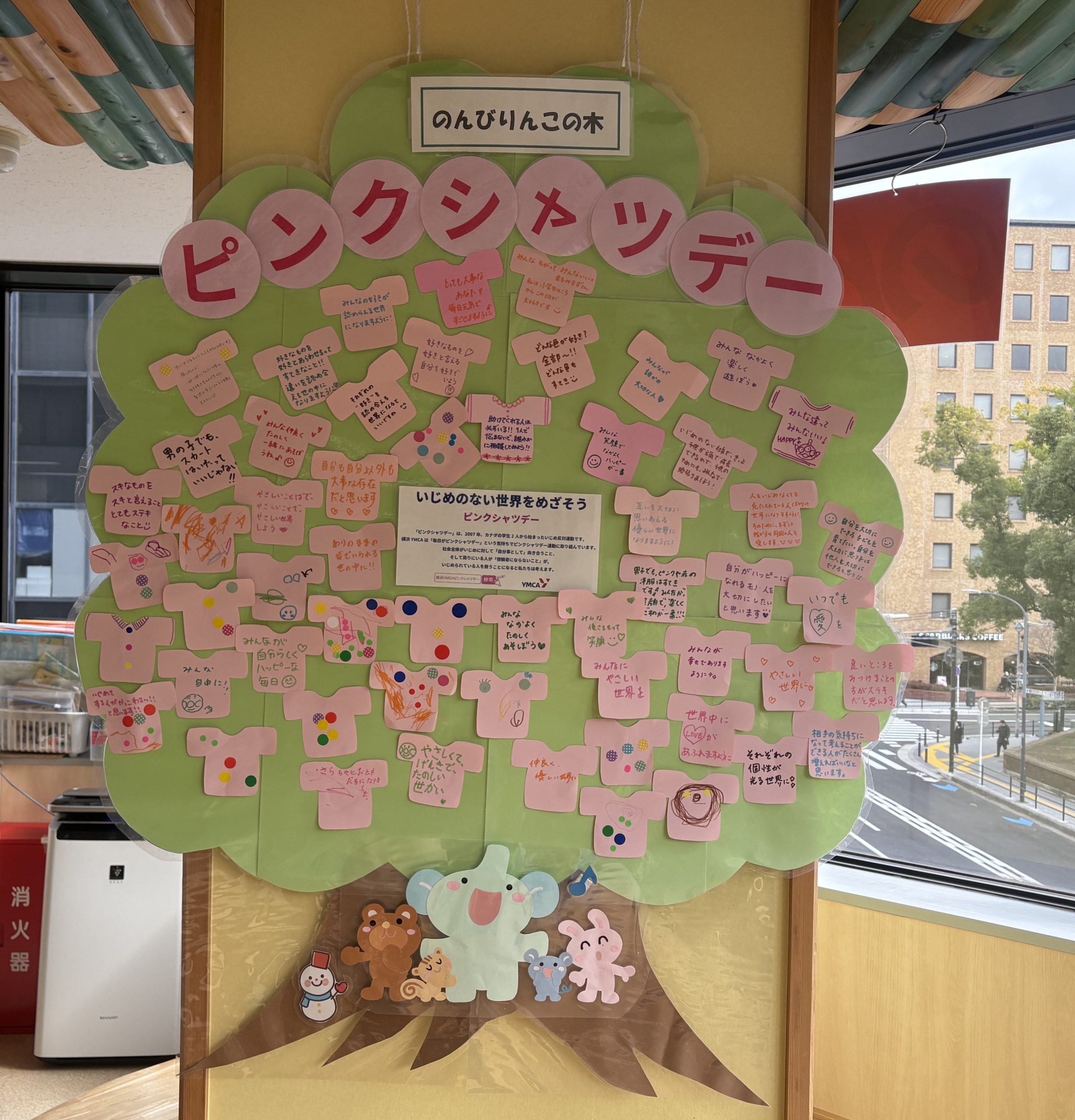 スタッフがピンクシャツデーが始まったエピソードをひろばでおはなししてくれました。