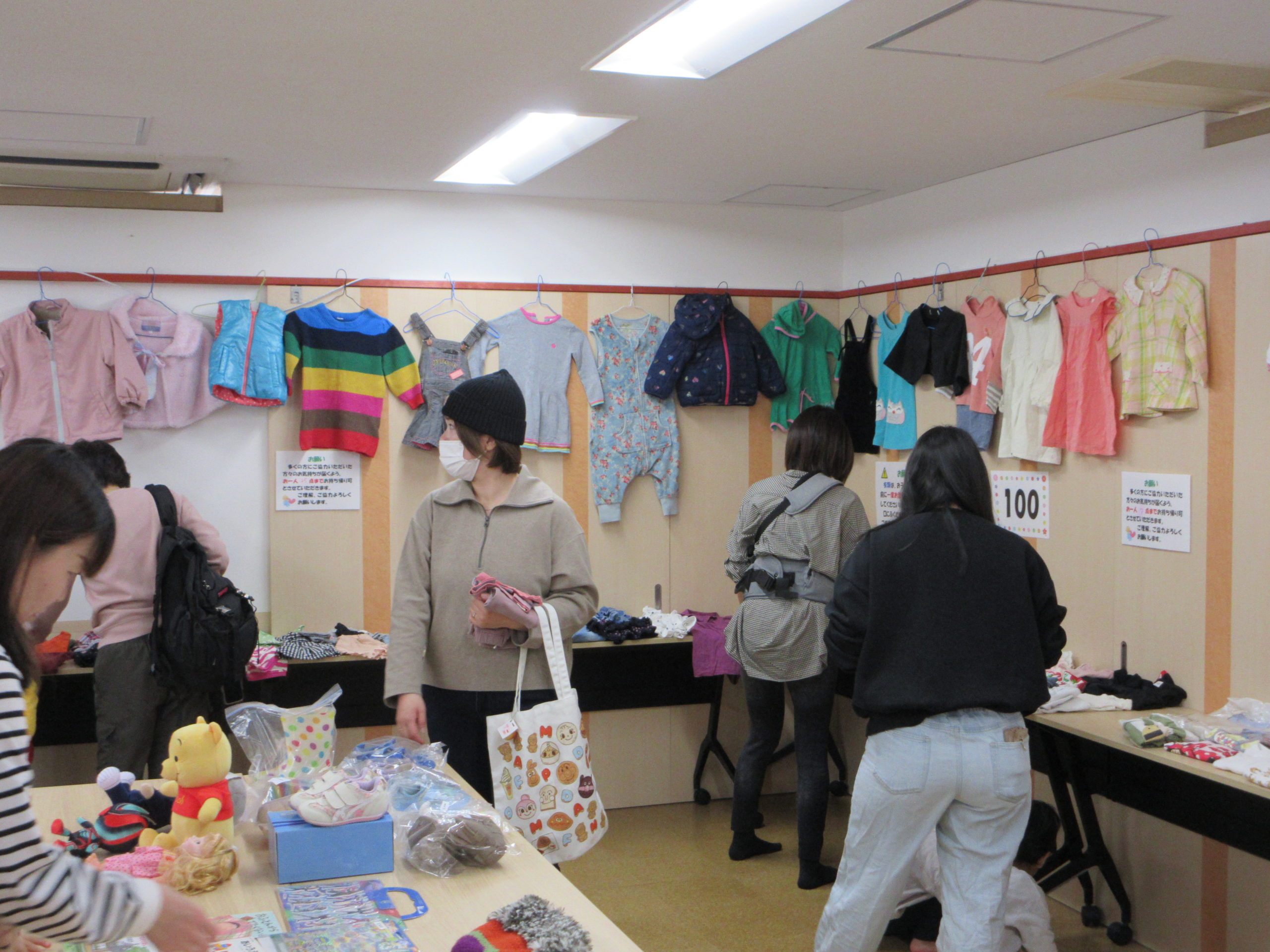 本日は95・100㎝のサイズの衣類や育児用品が並びましたよ。