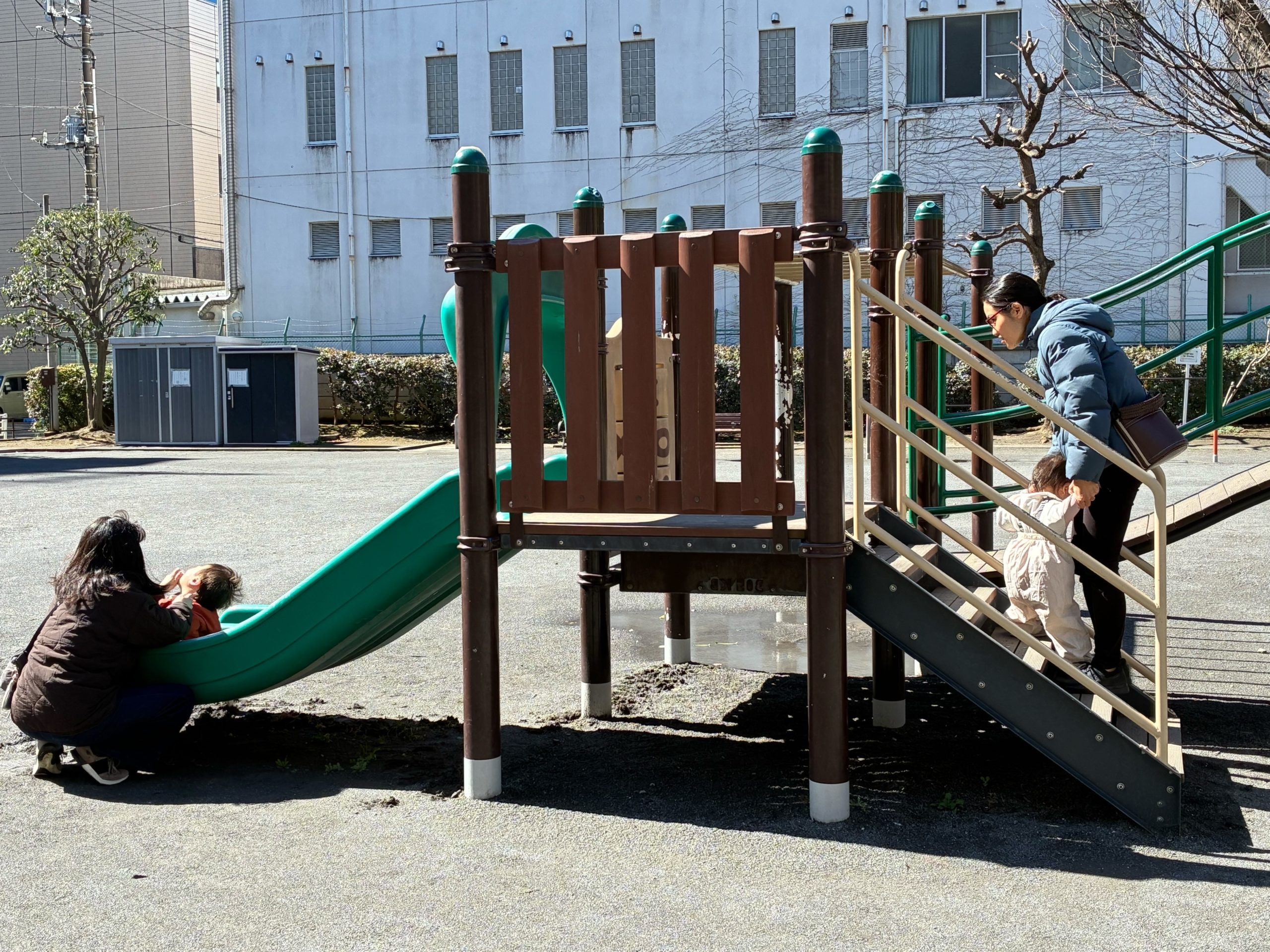 雨上がりの公園でしたが、水たまりを埋め、遊具も拭いたら日が差してきました🌤