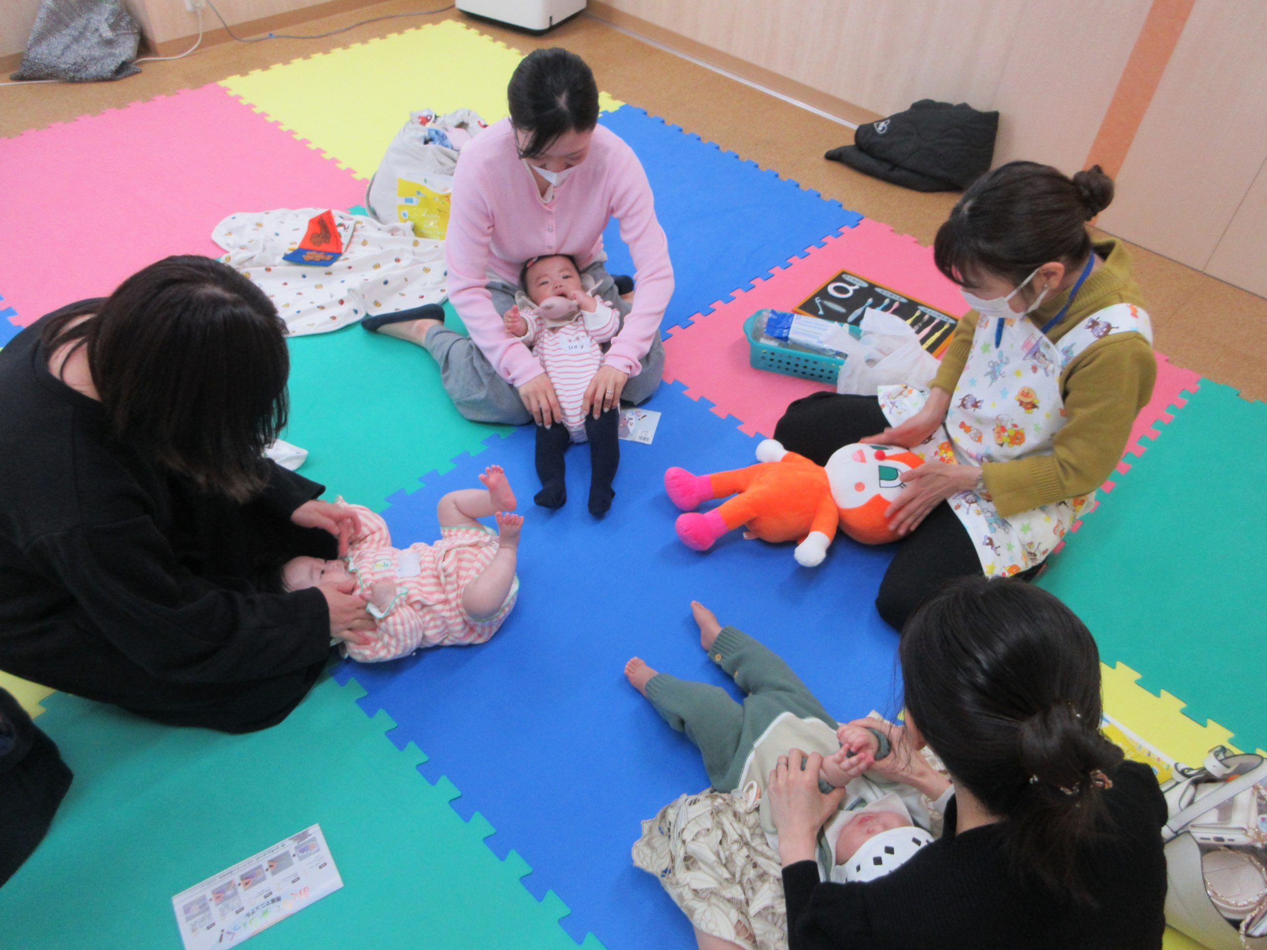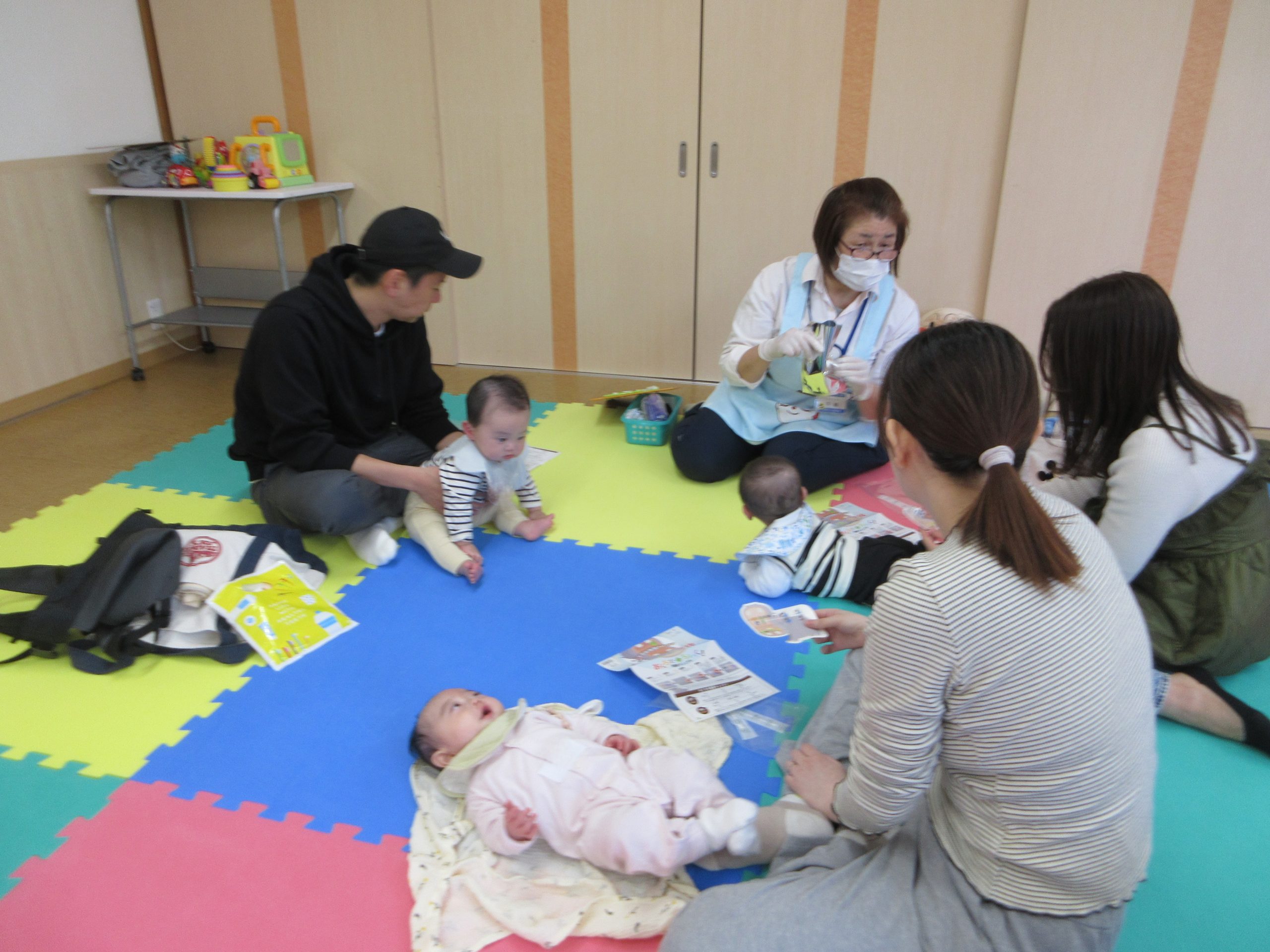 のんびりんこでは今年度最後の「はじめての歯ぴか教室」が開催され、8組の赤ちゃんとママ・パパが参加されました。