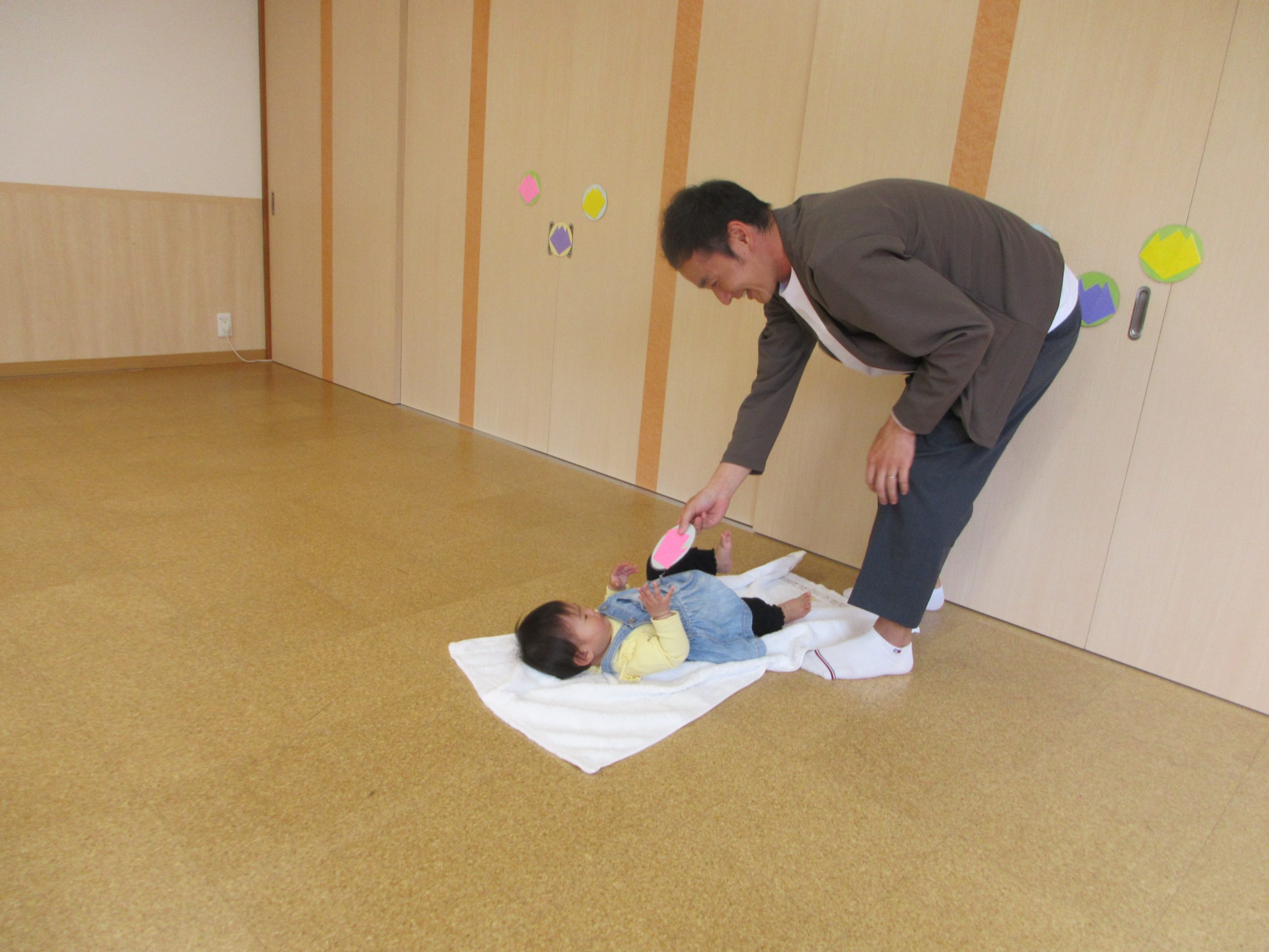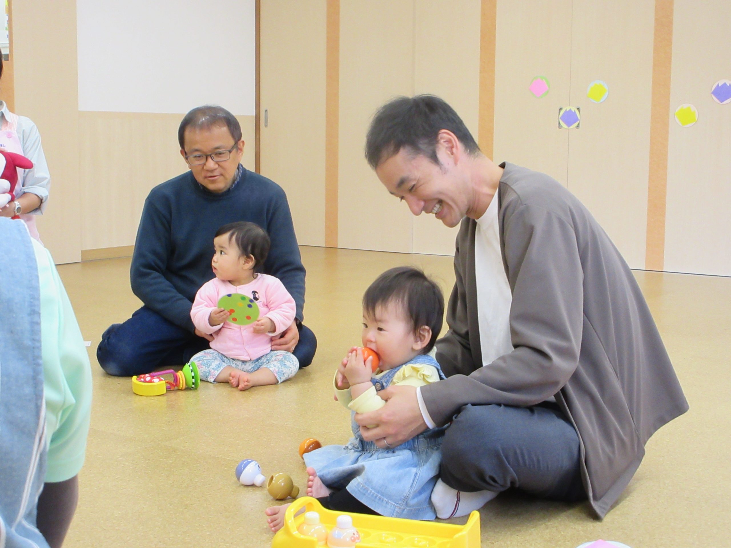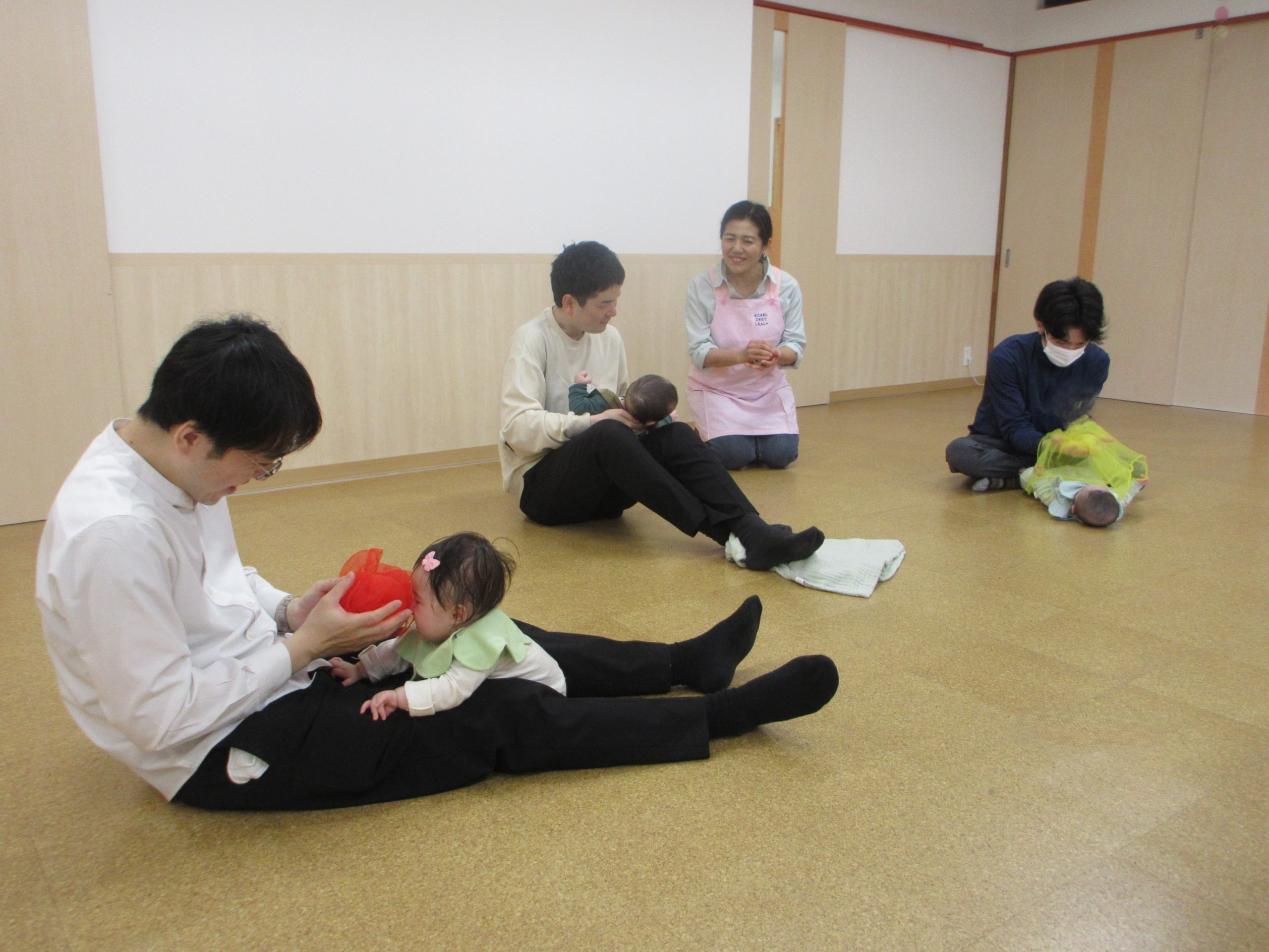 今日は0歳のお子さんとパパを対象にふれあい遊びなどを楽しみました~